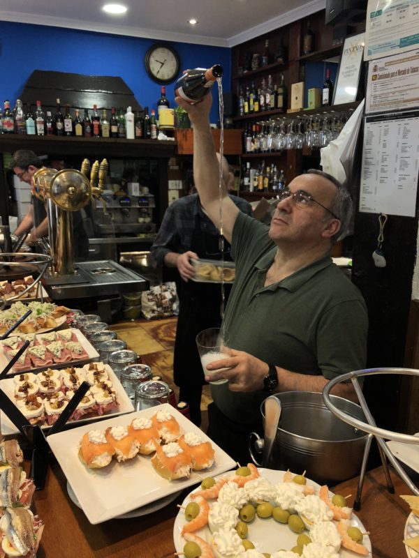 ともかく、観光客だけでなく地元のおじさまも買い物途中のマダムも、お気に入りのピンチョスを片手に気軽に飲んでいる地元のワインが「チャコリ」です。